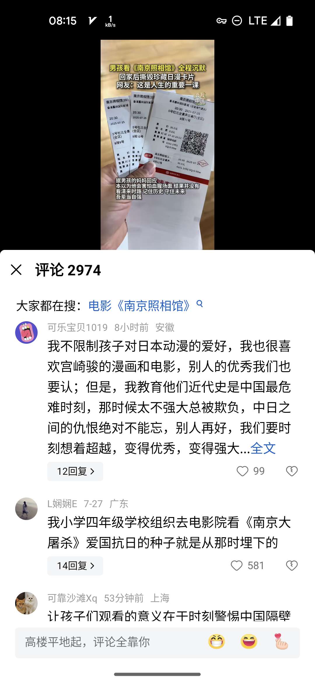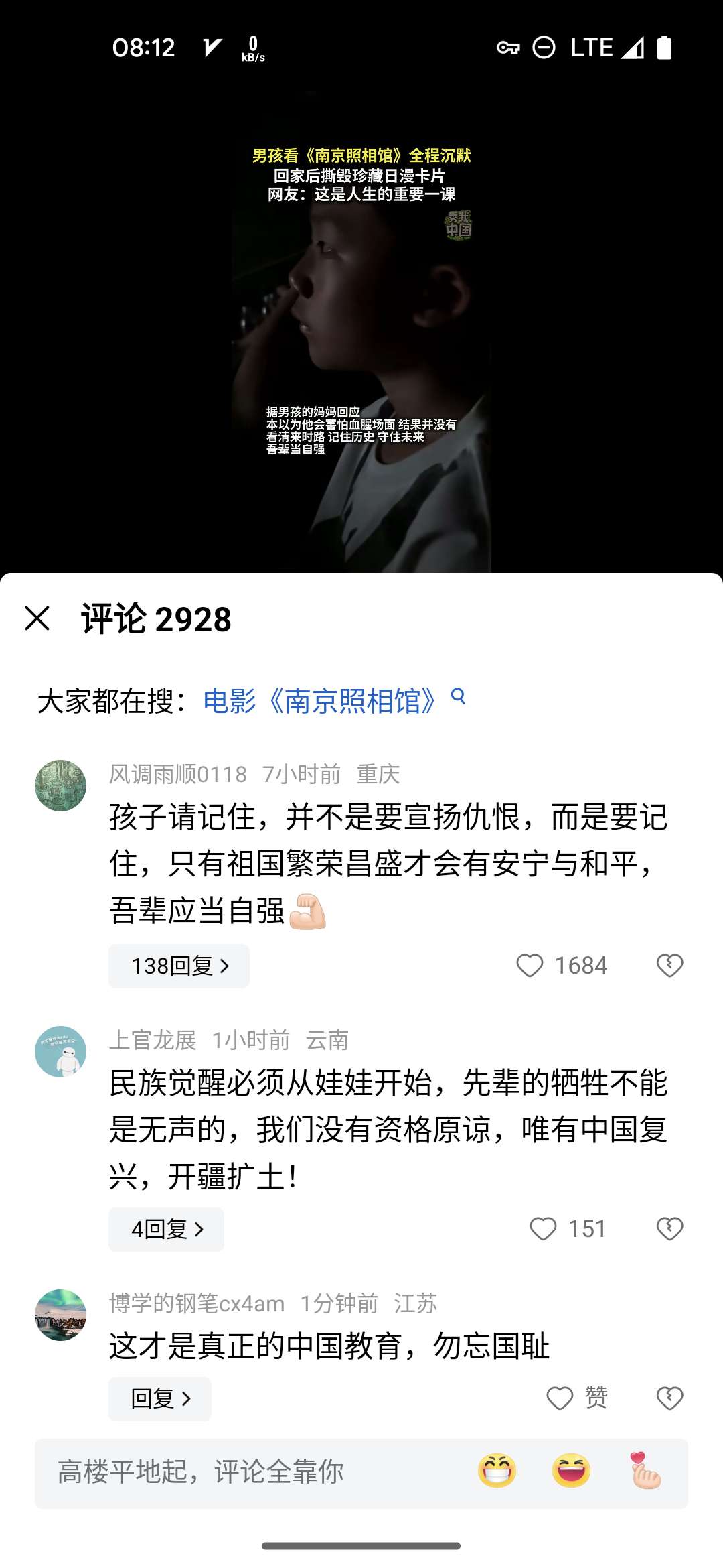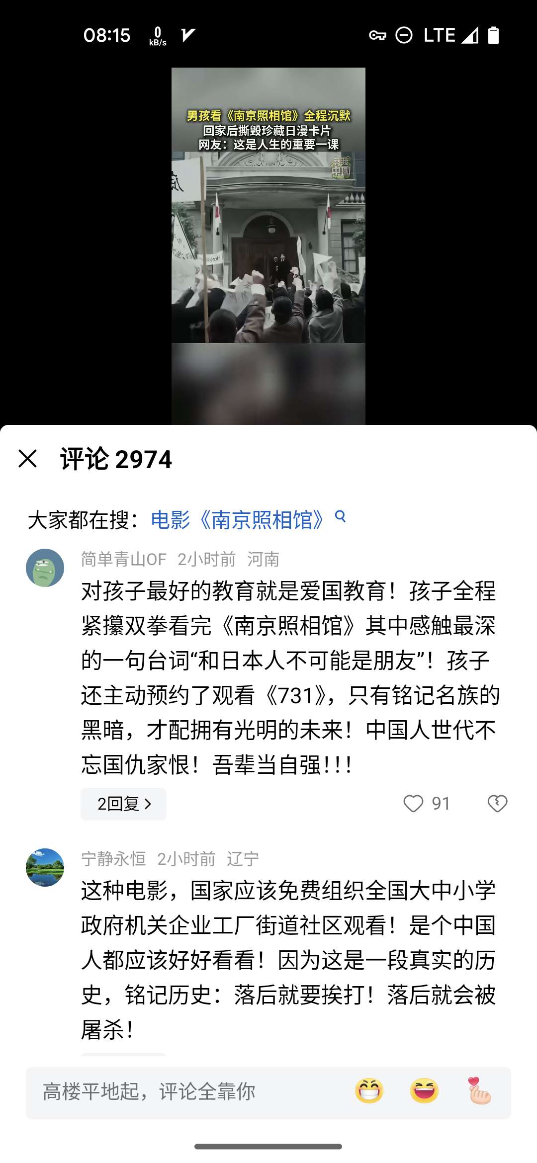 我小时候学校经常组织看爱国主义电影,那时候国产主题旋律电影没有现在这样的主动渲染仇恨氛围。那时候都是宣扬英雄主义,向英雄学习,学习他们的英勇,果敢,机智……现在都是宣扬仇恨。