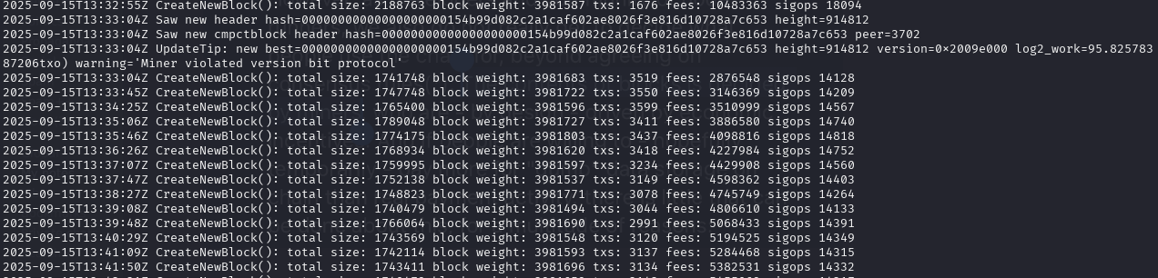 I solomine using my Bitcoin Knots node, BitAxe and DATUM (Decentralized Alternative Templates for Universal Mining) from Ocean.