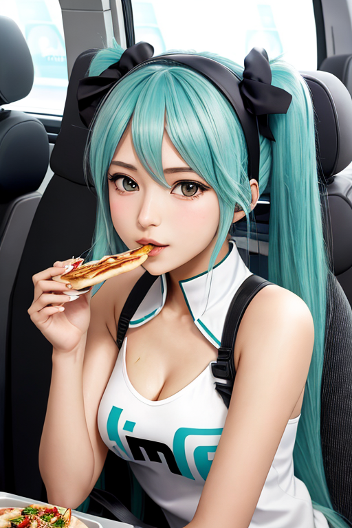 nostr:npub102ca8pnhy26vh2akepgr4vleyew65nuzug5val3sycslfe0wruwqzezyfp imagine Hatsune Miku eating a kebab in a TGV Duplex