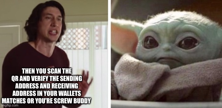 3) Send amount to hot self custodial wallet and teach him how to send it to cold storage. (See graphical example down below)