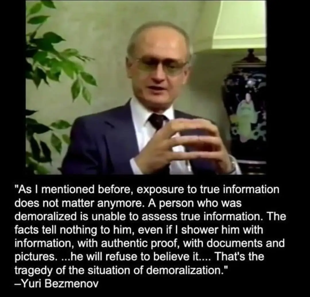 Mass-demoralization inevitably leads to mass-deterioration of the population's ability to effectively process facts & information.
