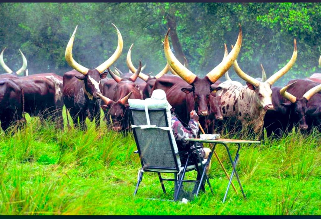Ankole Long-Horned Cattle (also known as inyambo) have a dark brown coat and long white horns that curve outwards and then up, in the shape of a lyre. They are majestic, elegant animals, able to travel long distances in search of pasture and water. Thanks to its impressive horns (almost six times longer than those of European cattle breeds), this breed was once considered the incarnation of divine beauty, a yardstick for women and worriers.