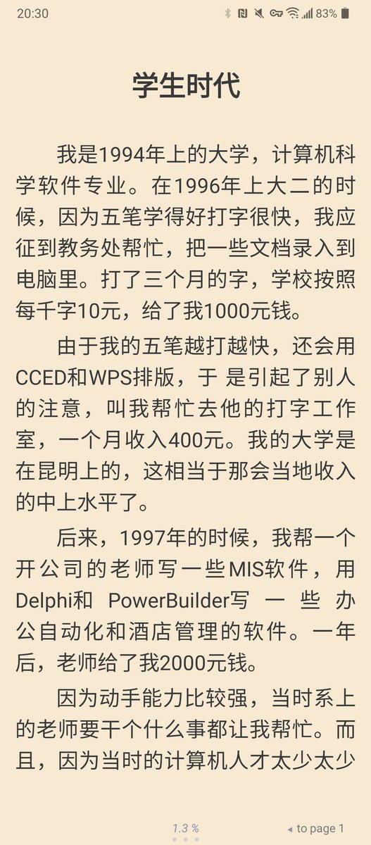 买了台二手Compaq笔记本,除了专业课以外的所有课,特别是大课,就坐教室最后一排写代码,美资软件公司,按行数结算,注释也计算行数,一个月下来大概能拿到4000块左右,这份工一直做到本科毕业,也因此养成了良好的代码风格和注释习惯。