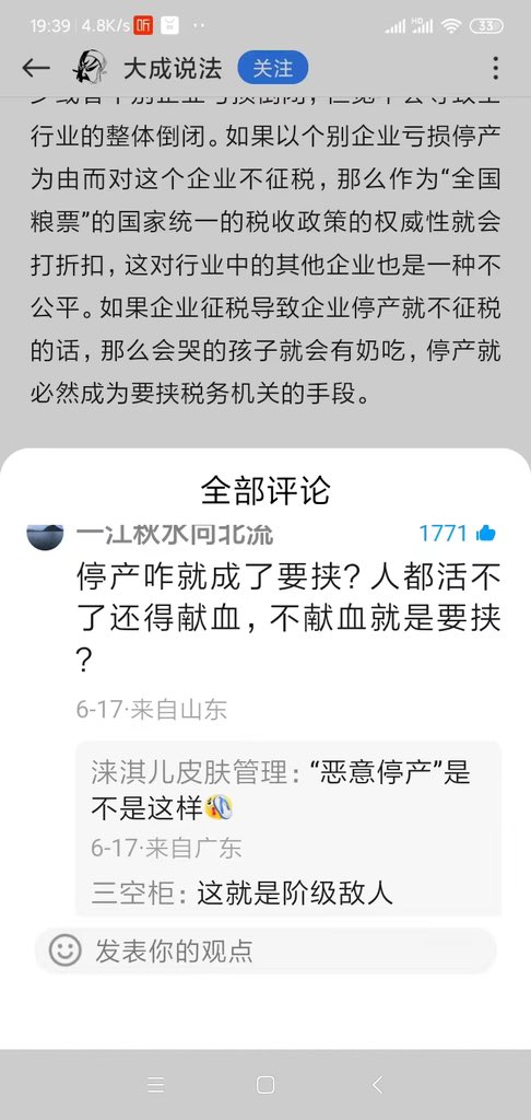 干不下去是真干不下去,停工要挟也是真停工要挟,可惜没什么卵用。本来依法破产该怎么清算怎么清算,偷逃税款责任人该怎么判怎么判的事儿,遇到法是恶法,红匪伪政权穷凶极恶要抢钱堵窟窿,只能小事化大,几败俱伤,没办法,时代的选择,居民的选择