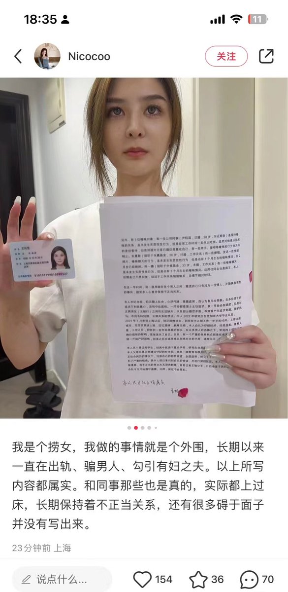 一则“东证期货女员工手持自白书出镜自曝生活作风存在问题”的消息在网络流传。7月29日,记者联系到东证期货的一名工作人员,该工作人员表示“目前公司和员工本人已向有关部门报警,具体情况请关注后续警方发布的调查结果。”(正观新闻)