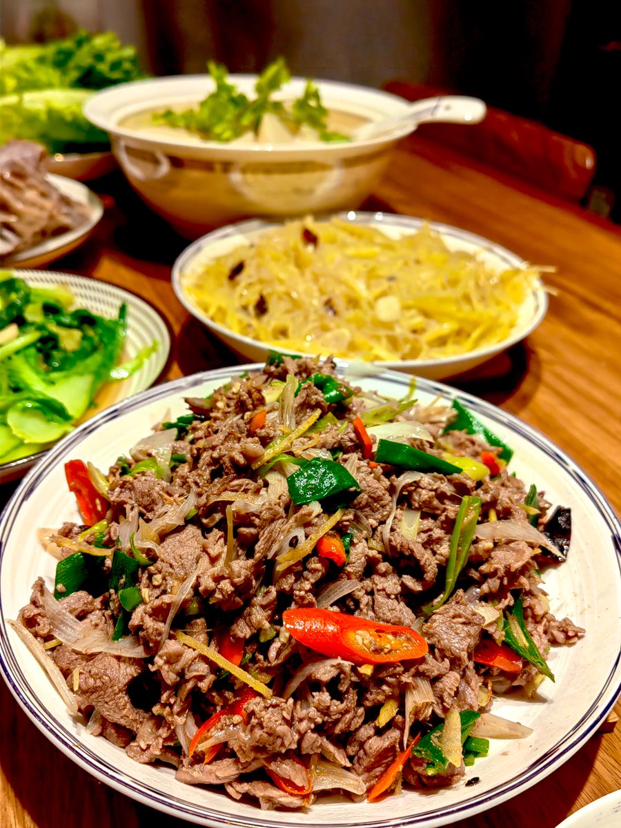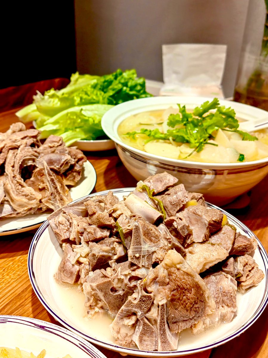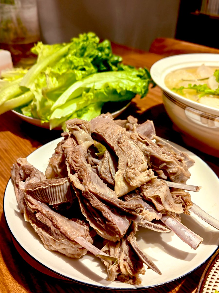 白灼羊排和羊蝎子非常成功,跟之前去西北吃的几乎一模一样了,没有膻味,只有奶香味的羔羊肉。煲的羊汤再做一个萝卜粉丝煲,最后是羊后腿炒的葱爆羊肉。 https://t.co/Wxx8W5djtb