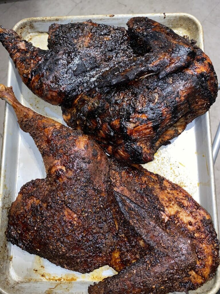 first time cooking a turkey, jerk style on top, huli huli style on bottom!! https://www.diningandcooking.com/1892333/first-time-cooking-a-turkey-jerk-style-on-top-huli-huli-style-on-bottom/ #grilling #GrillingPorn