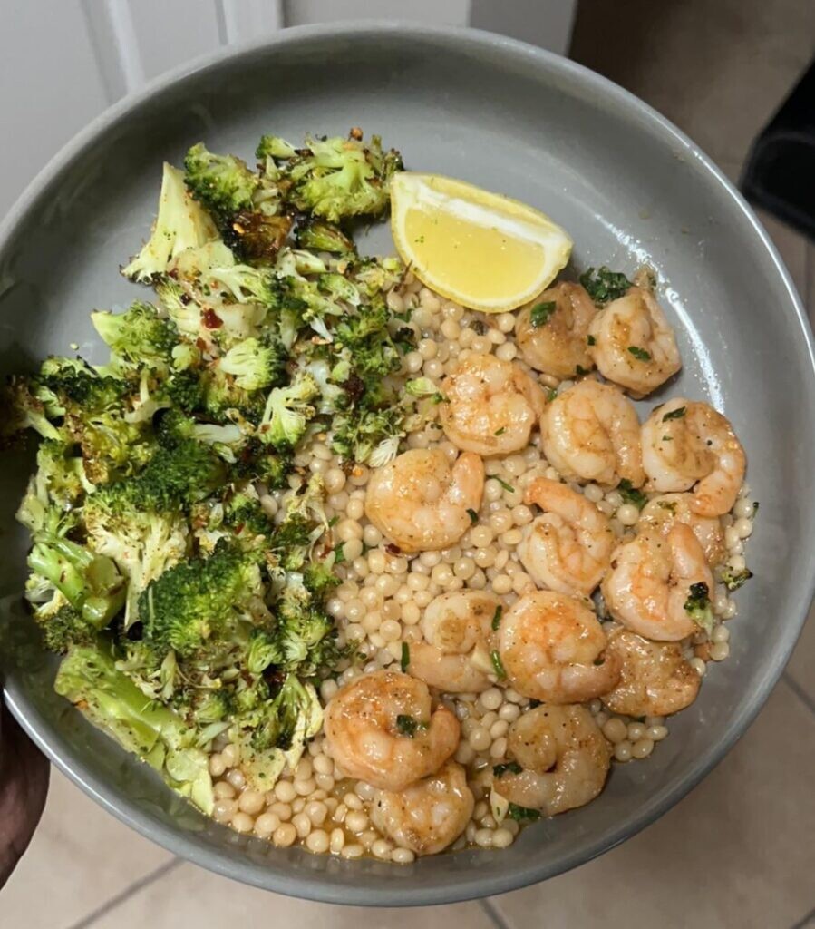 Garlicky Shrimp Couscous Bowl https://www.diningandcooking.com/1934870/garlicky-shrimp-couscous-bowl/ #GetCooking #HelloFresh