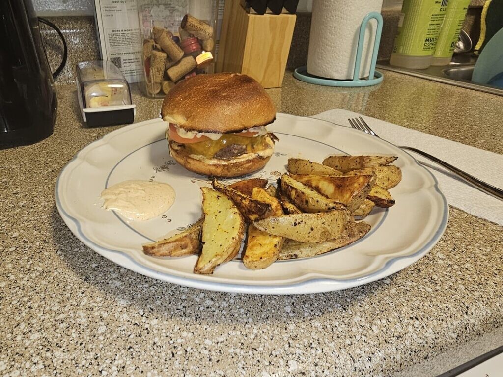 Chesapeake Cheddar Burgers with Potato Wedges & Old Bay Aiolo https://www.diningandcooking.com/1937006/chesapeake-cheddar-burgers-with-potato-wedges-old-bay-aiolo/ #GetCooking #HelloFresh