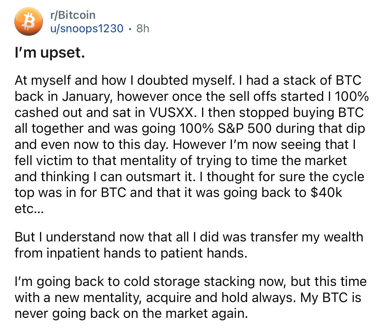 i doubt op actually means cold storage. i'm not familiar with the swap service that goes from BTC to VUSXX