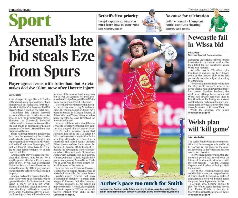 ๐ฒ [ Just iN ] โฝ๏ธ #Arsenal and Crystal Palace have reached an agreement for Eberechi Eze at a ยฃ60m fee! Arsenal is finalizing contract terms, and Eze is eager for the move. #Gooners
