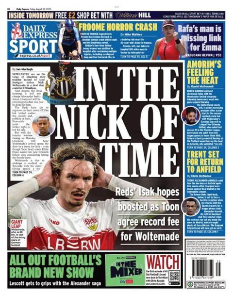 π² [ Just iN ] β½ Newcastle bracing for Liverpool bid Β£120β130m for Alexander Isak; Magpies also targeting Jorgen Strand Larsen (Β£60m). Man Utd open to loan (with buy option/obligation) for Rasmus Hojlund to Napoli. Everton eye Nathan Ake; Spurs linked with Akliouche, Nico Paz & Nkunku. Roma, Betis chase Sancho & Antony; Forest after Matty Cash/Carmona. #Transfers