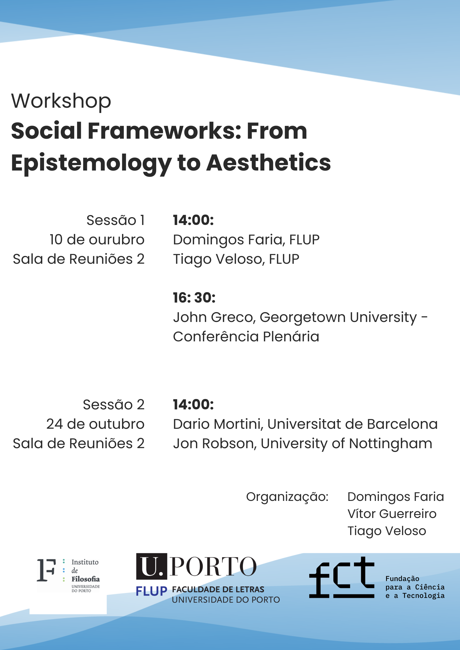 I'm co-organizing a workshop on "Social Frameworks: From Epistemology to Aesthetics", which will take place at the University of Porto on October 10th and 24th. Everyone is welcome! More information here:
