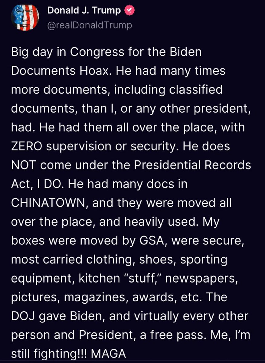 Biden NEVER had legal authority to take these documents. President Trump DID have legal authority.