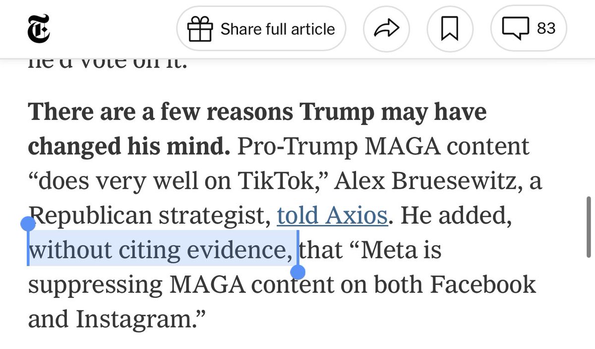 Will the New York Times apologize to me for insinuating I lied about the censorship of political content on Instagram and Facebook?