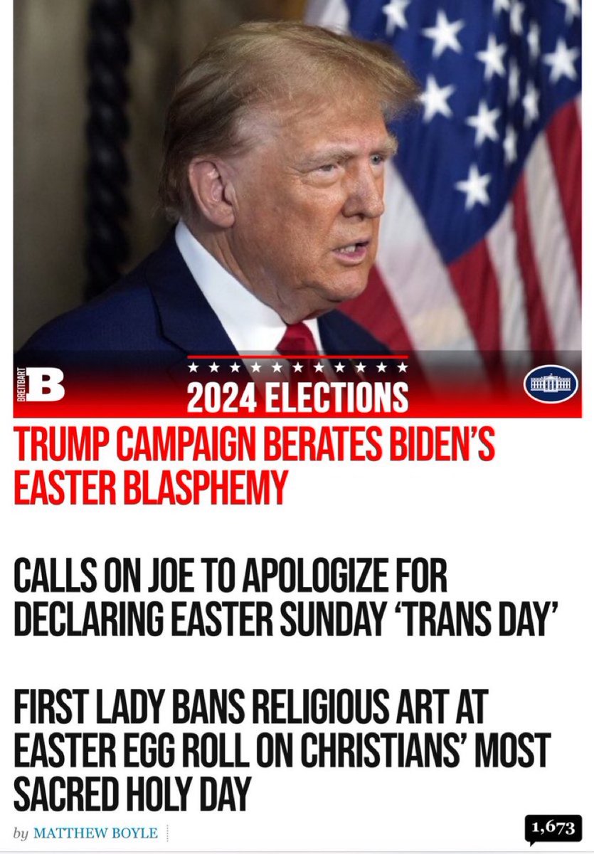 Exclusive — Trump Camp: Biden Must Apologize to Christians after Declaring Easter Sunday ‘Trans Day,’ Banning Kids from Religious Egg Designs at WH