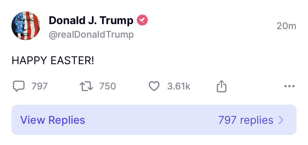 President Trump wishes everyone a very happy Easter! https://t.co/Pp9iJoMvac