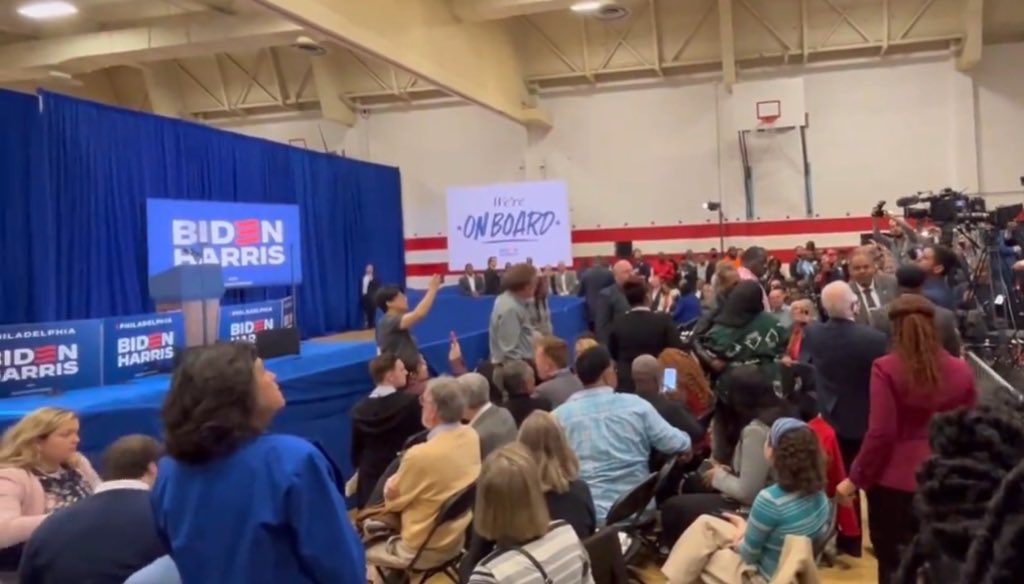 Biden is hosting an event in Philadelphia, Pennsylvania today and there are *maybe* 100 people in attendance. Mostly media.