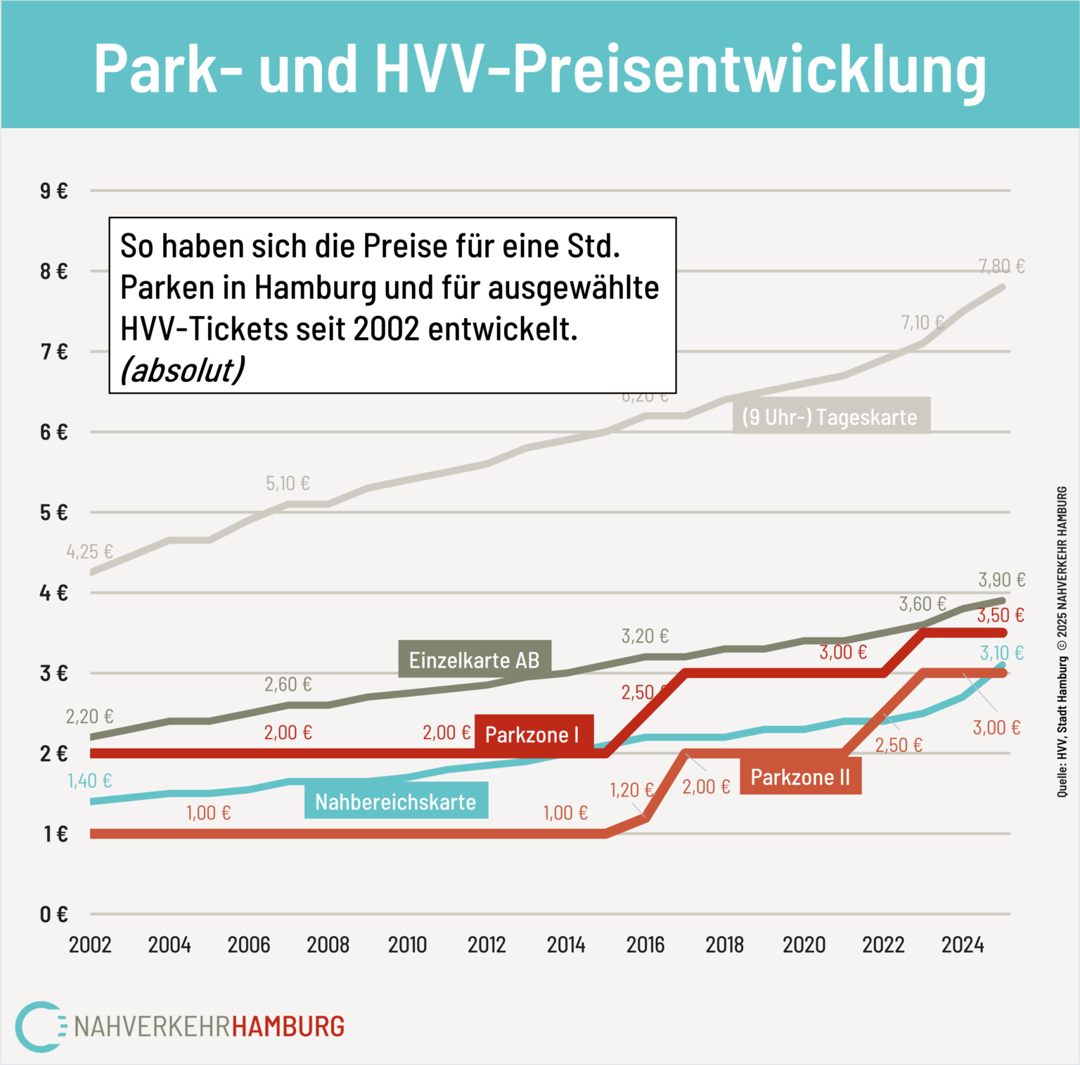 Unser Langzeitvergleich zur Parkpreisentwicklung in #Hamburg zeigt unter anderem, dass bei Parkgebühren und #HVV-Tarifen offenbar mit zweierlei Maß gemessen wird, was die soziale Vereinbarkeit angeht.