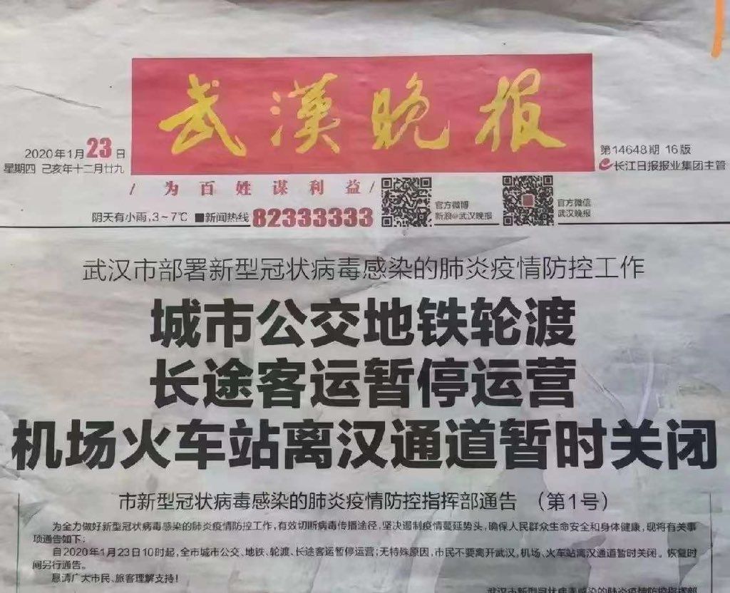 2020年1月23日,武汉宣布封城,所有城市公交地铁轮渡长途客运暂停运营,机场火车站离汉通道暂时关闭。