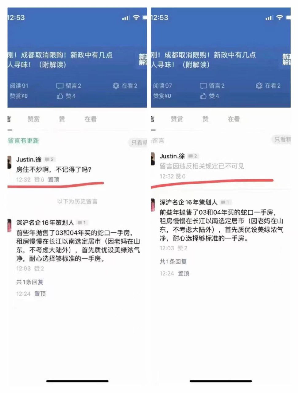 “房住不炒”已经是公众号评论里的敏感词了。