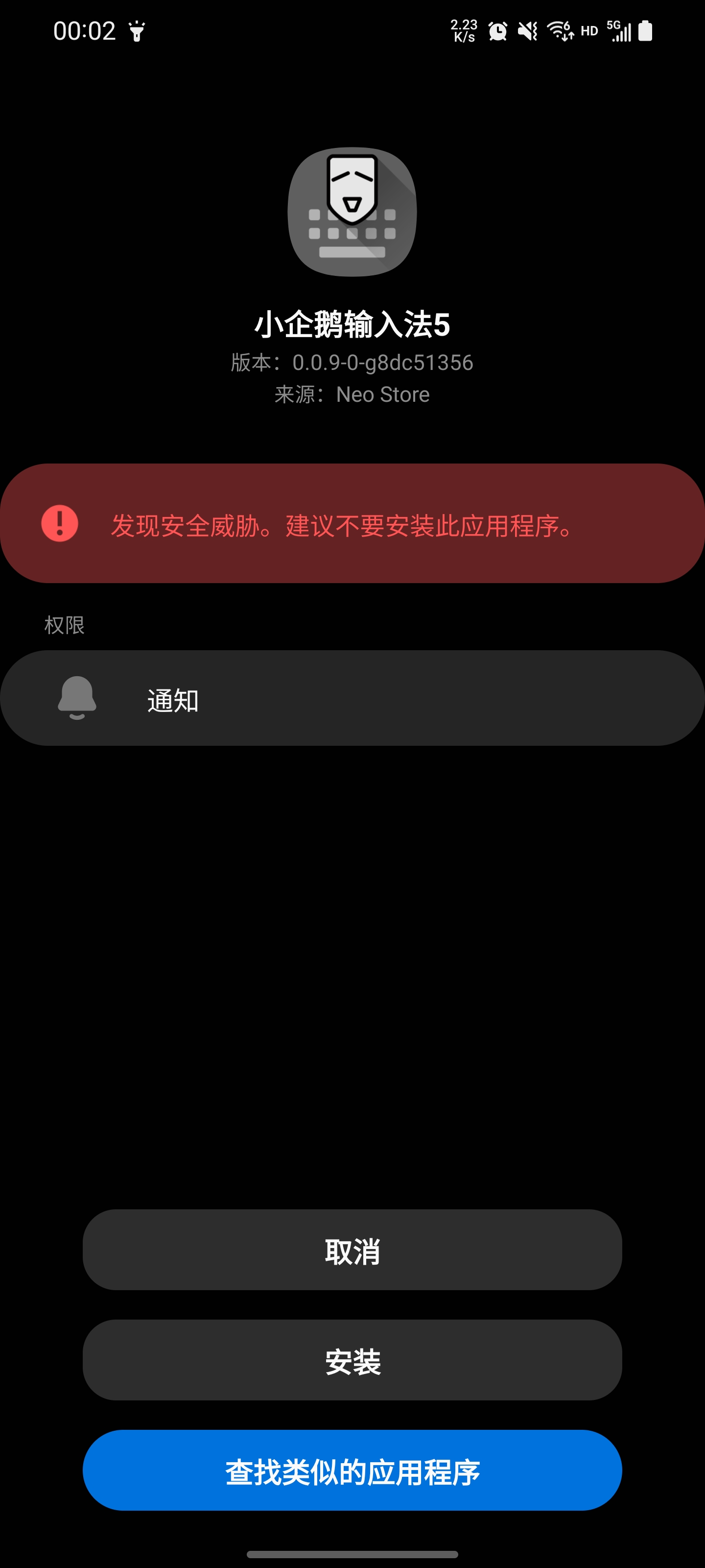 还提示小企鹅输入法危险。