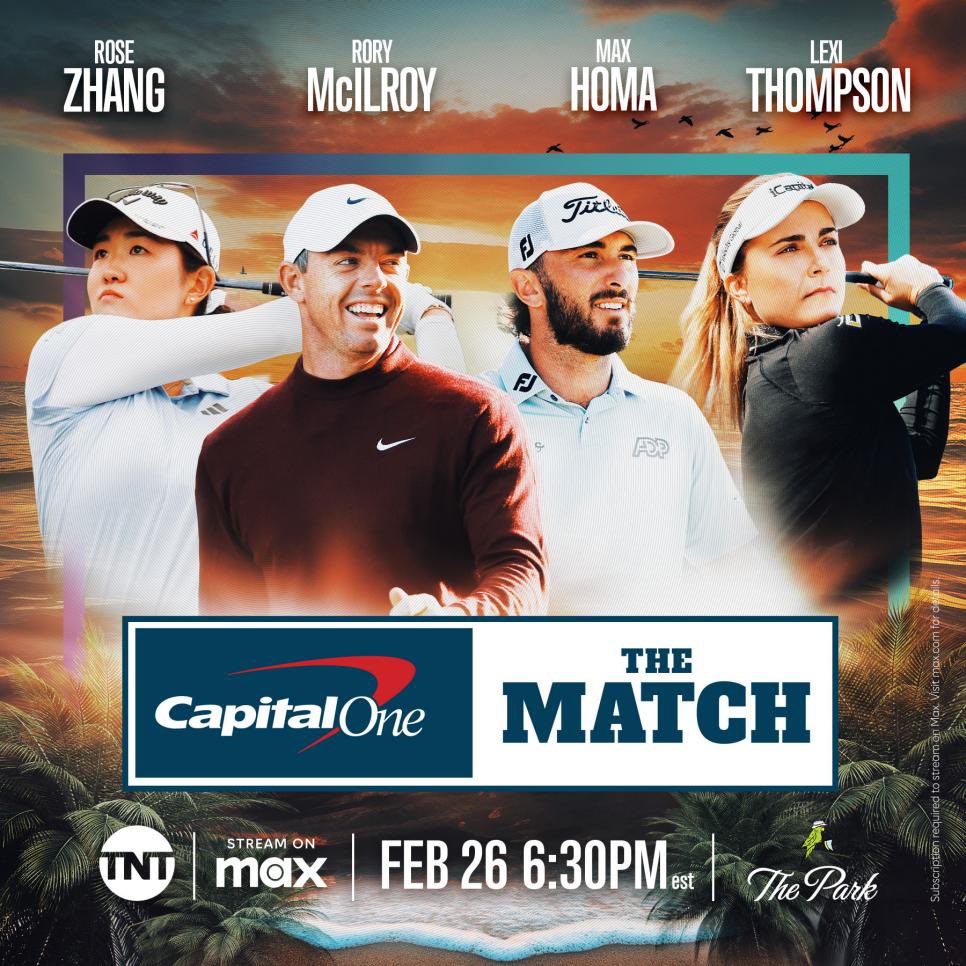 🚨🏌🏼♂️🏌🏼♀️THE #MATCH — The 9th edition of ‘The Match’ will take place tonight at The Park West Palm (6:30pm ET). The 12 hole skins game features Lexi Thompson, Max Homa, Rory McIlroy & Rose Zhang.