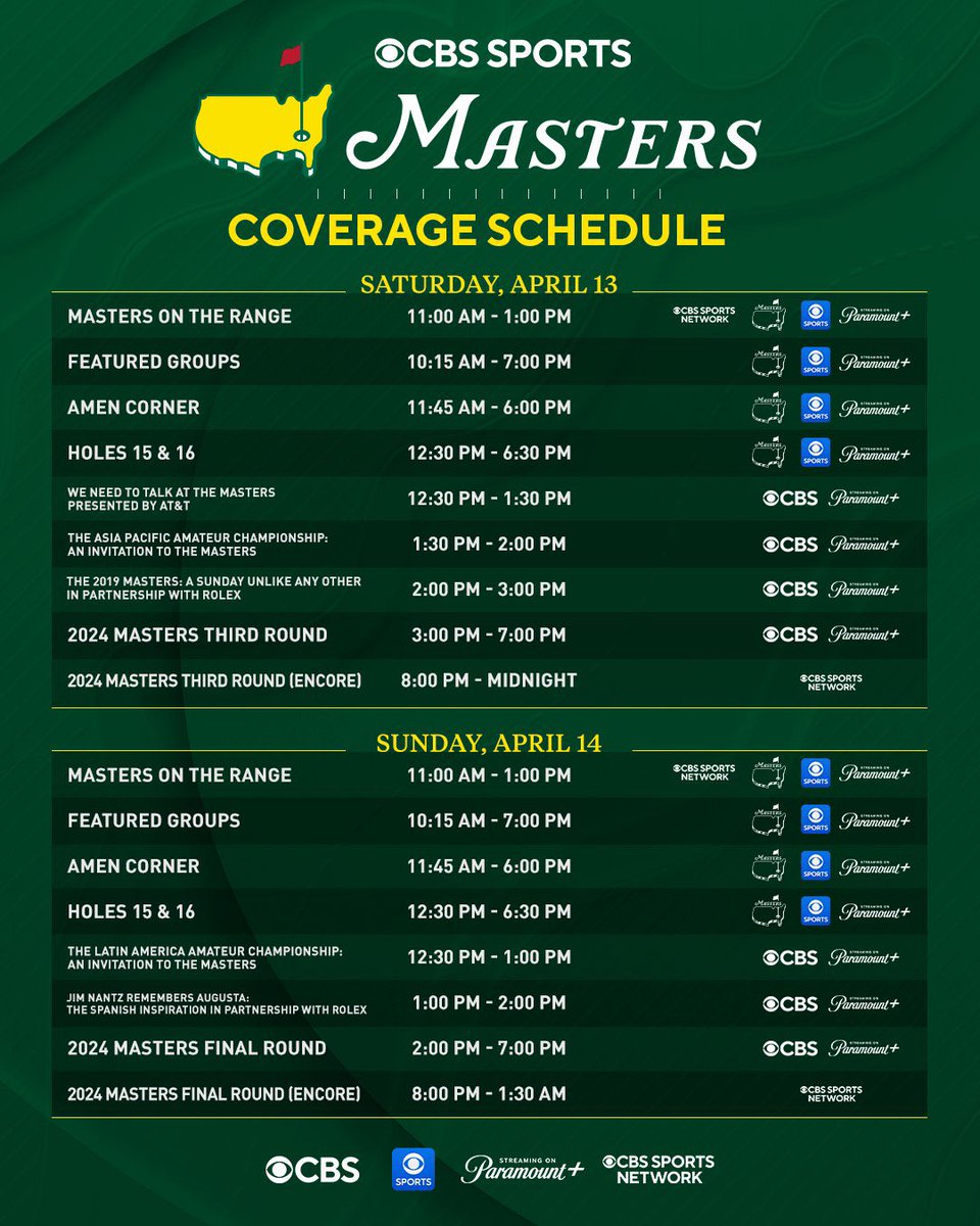 🚨🌺📺 #SCHEDULE — The complete @GolfonCBS Masters coverage schedule has been released 🔥 https://t.co/I8OkiCYvY7
