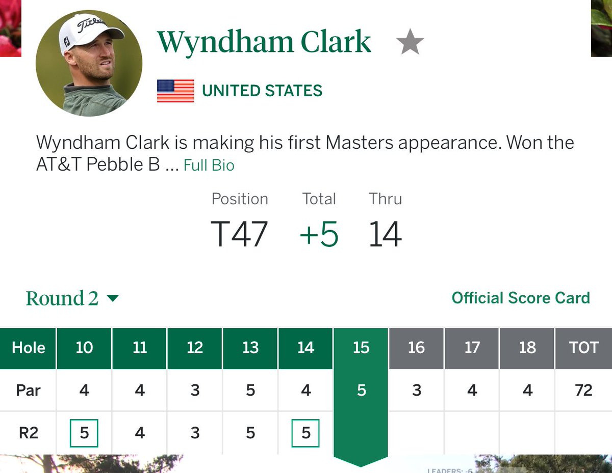 Wyndham fired a second round +6 (78) & missed the cut at #themasters 💀