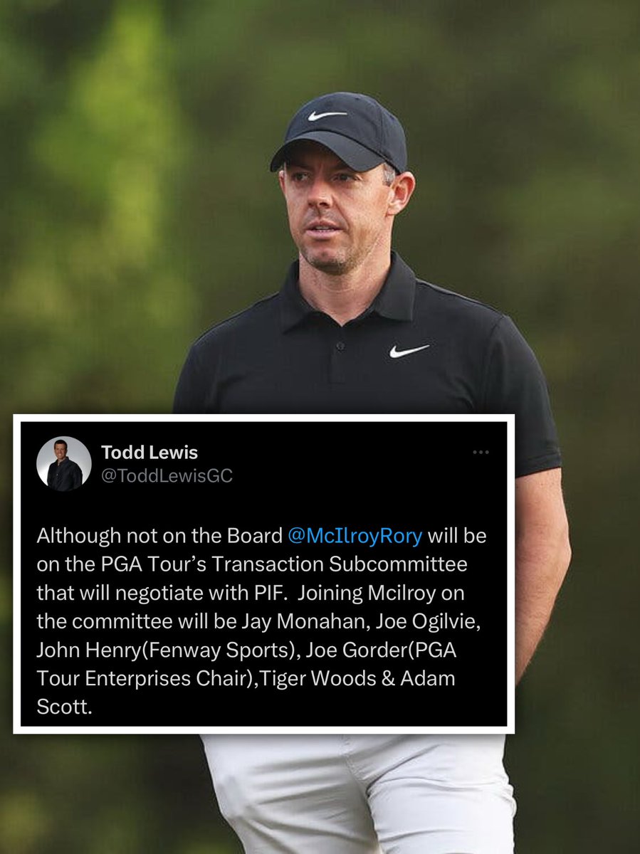 🚨JUST IN: Rory McIlroy will be apart of the PGA Tour’s Transaction Subcommittee which will attempt to negotiate a deal with the PIF, per @ToddLewisGC. https://t.co/hx6Rr3FLuw