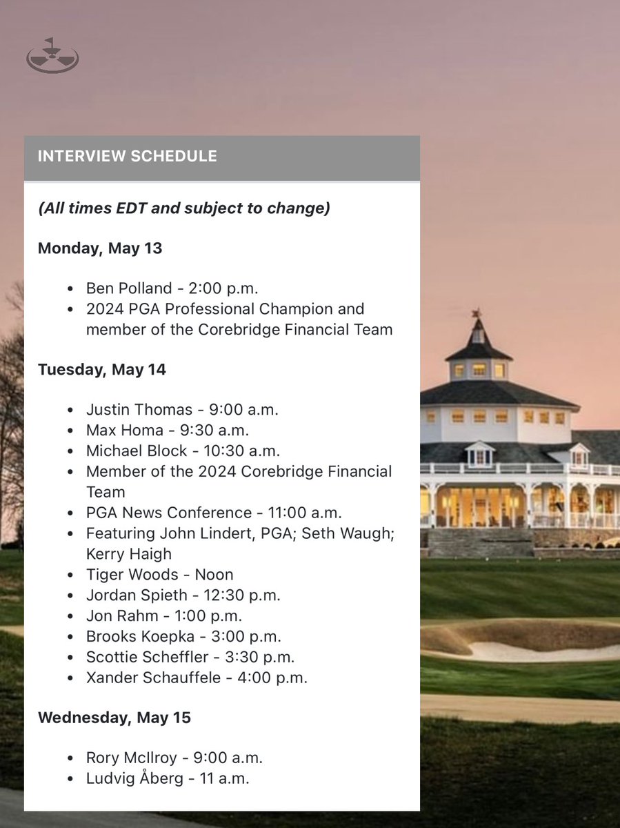🚨🎙️PGA Championship interview schedule https://t.co/EMZZ18A9W2