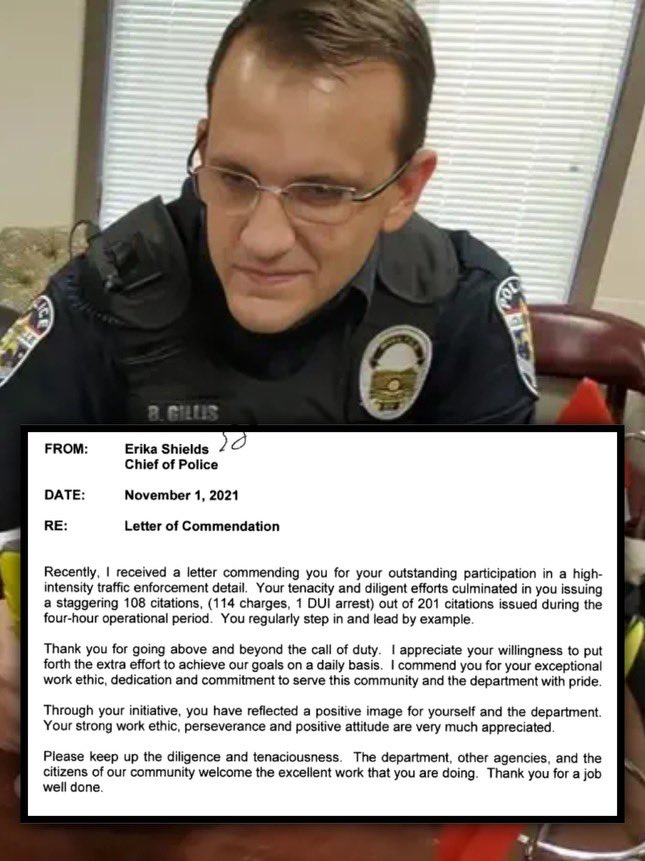 ๐จ๐ฎ๐ผโโ๏ธ๐ซต #STAGGERING NUMBER โ In 2021, Officer Gillis, Scottie Schefflerโs arresting officer was commended and recognized for issuing 108 citations during a 4 hour period. (First reported: @JasonRileyWDRB) https://t.co/SmwTV812eb