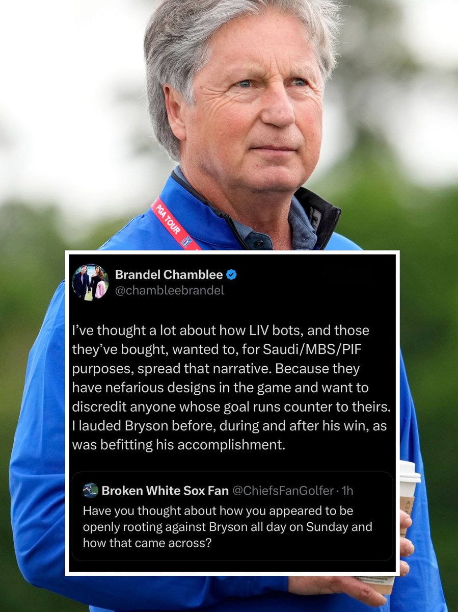 π¨π€ποΈ Golf Channelβs @chambleebrandel sounds off on βLIV Botsβ after being accused of openly rooting against LIV Golf star Bryson DeChambeau: βThey have nefarious designs in the game and want to discredit anyone whose goal runs counter to theirs.β