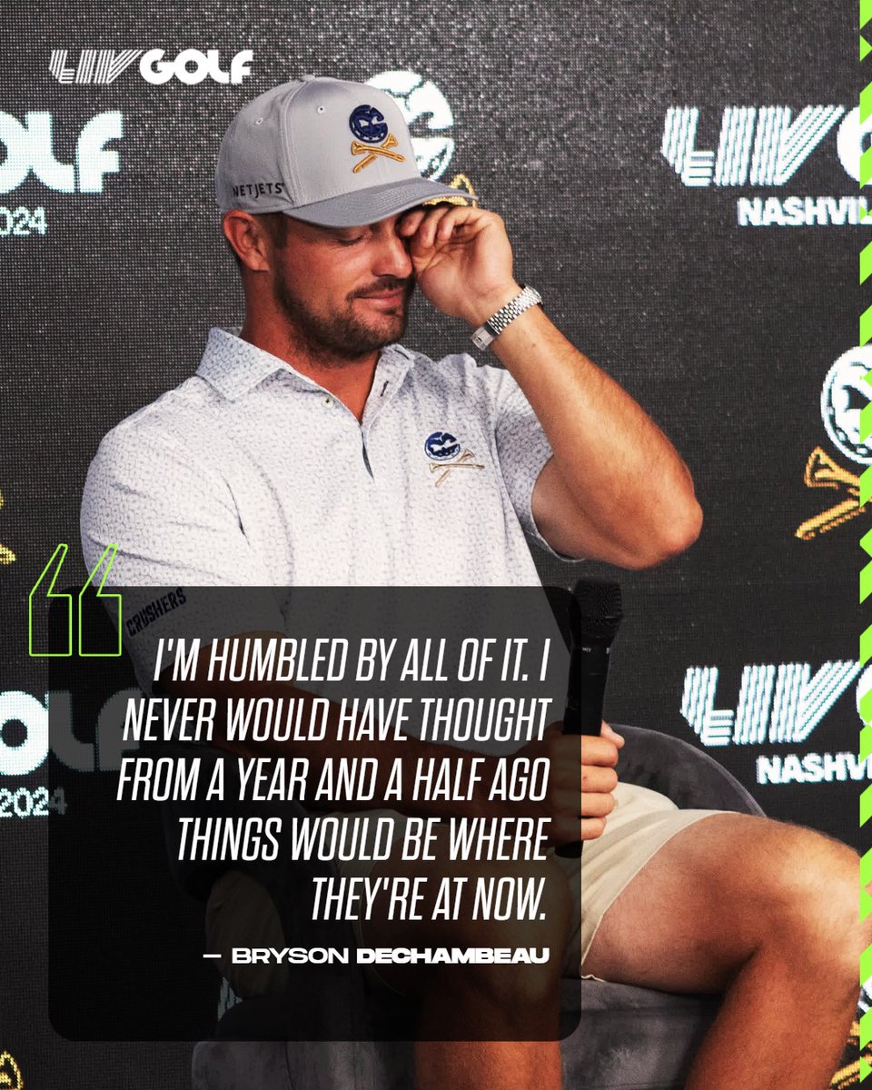 π¨π€π₯Ή #EMOTIONAL MOMENT β 2024 U.S. Open champion Bryson DeChambeau gets emotional at his LIV Golf Nashville presser: βI canβt tell you enough how much everyone means to me, the people who stuck around, the people who were giving me that motivation.β