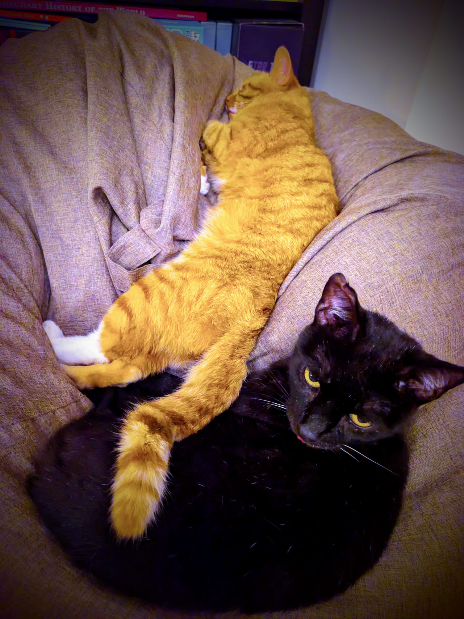 My furry bois Shadow and Heathcliff having a relaxing first day of the year.