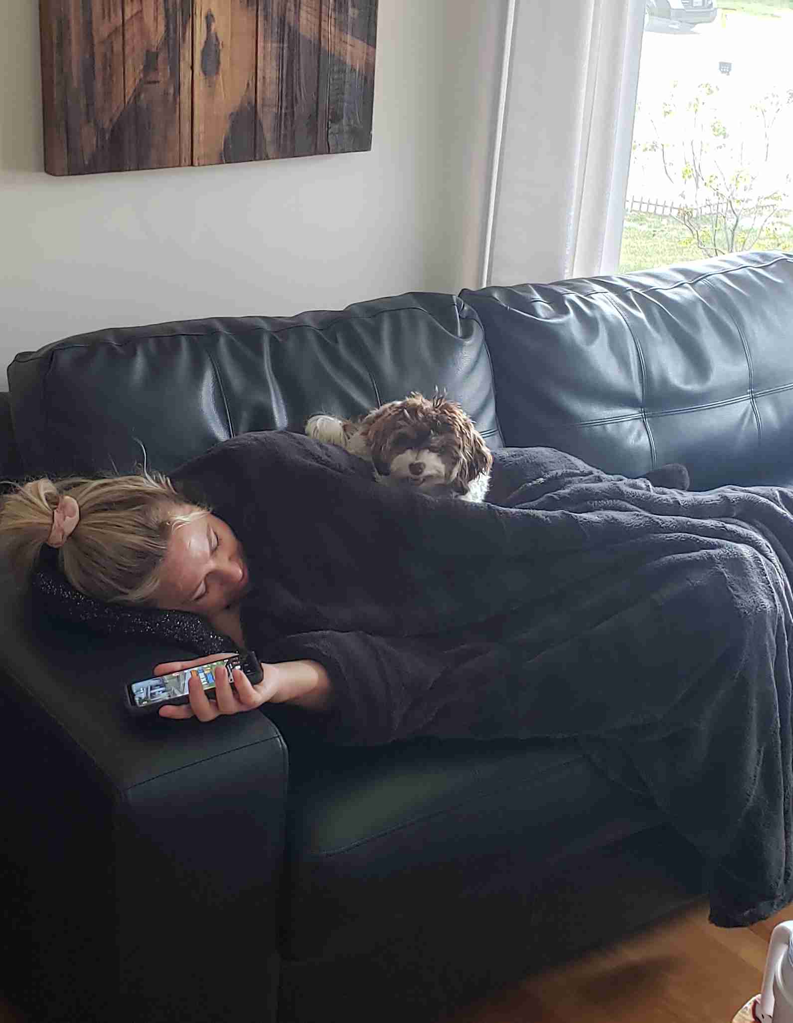 Not feeling well and my puppy(who is also sick) is taking good care of me. ๐งก #ZBD #NOSTR #zbdpets #stackathon