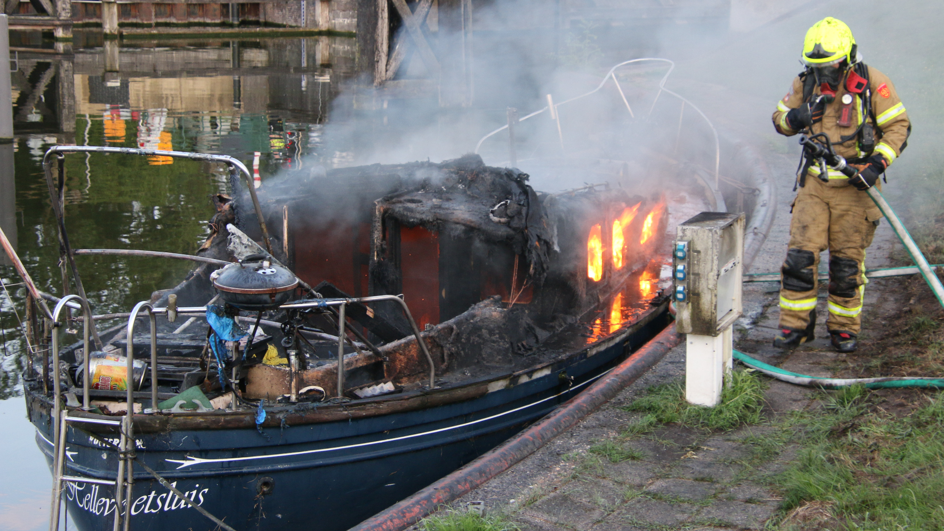 In Hellevoetsluis is gisteravond een plezierjacht uitgebrand. De boot lag aan de Kanaalweg Oostzijde. Van het jacht is niet veel over. - https://www.rijnmond.nl/nieuws/2046585/brand-verwoest-plezierjacht