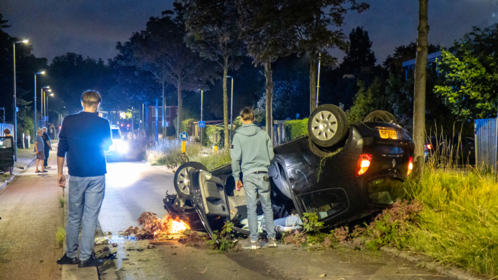 Van mama geleende auto belandt ondersteboven op de weg | Voordeur vernield door explosie