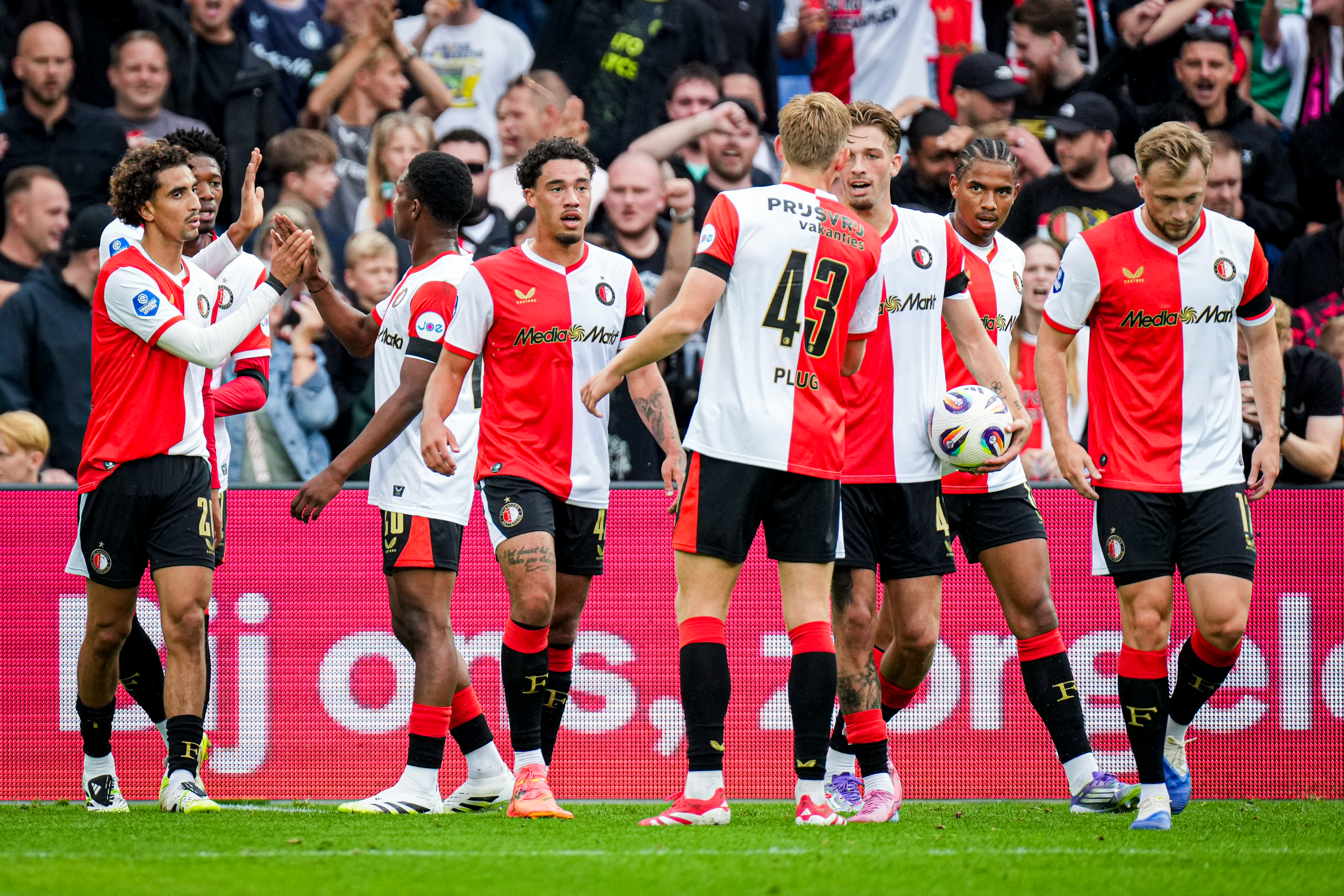 Feyenoord heeft de voorbereiding afgesloten met een ruime overwinning tegen VFL Wolfsburg in De Kuip. De Rotterdammers wonnen 4-0 in een niet-uitgespeelde wedstrijd. Het duel werd in de 77e minuut stilgelegd door een medische noodsituatie op de tribune. - https://www.rijnmond.nl/nieuws/2050877/feyenoord-sluit-voorbereiding-af-met-overwinning-in-niet-uitgespeelde-wedstrijd-tegen-wolfsburg