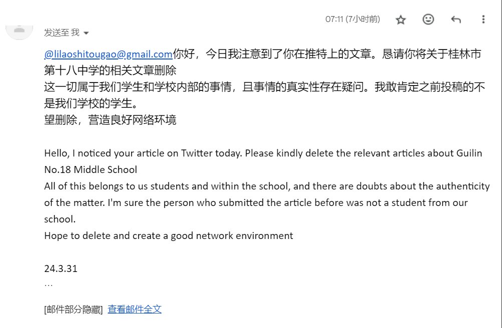 学校发邮件要求删帖还是第一次见到 https://t.co/eBN7PBSRug