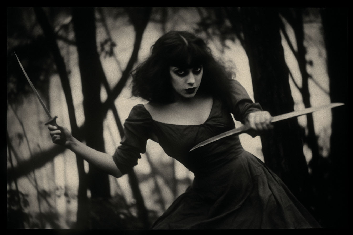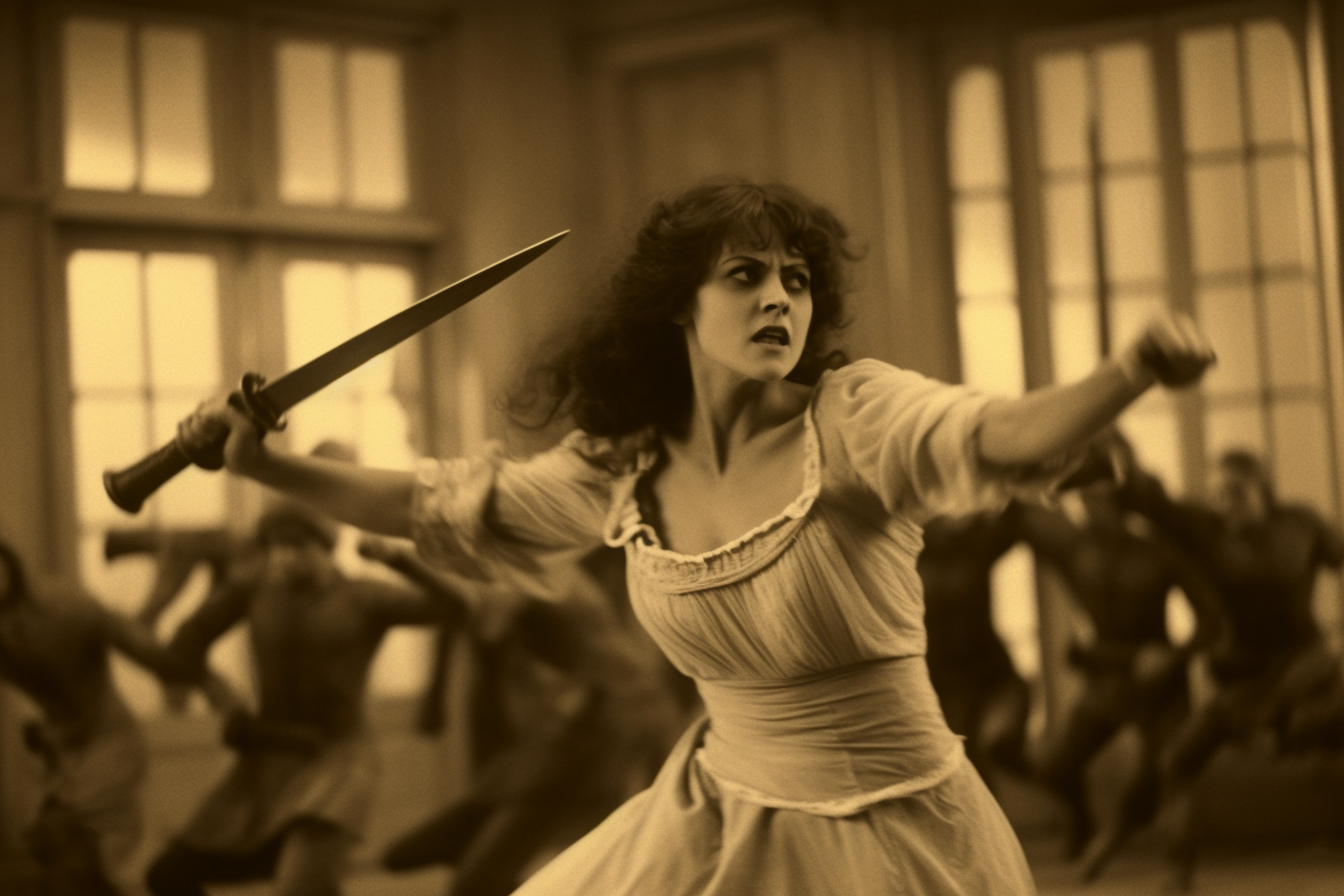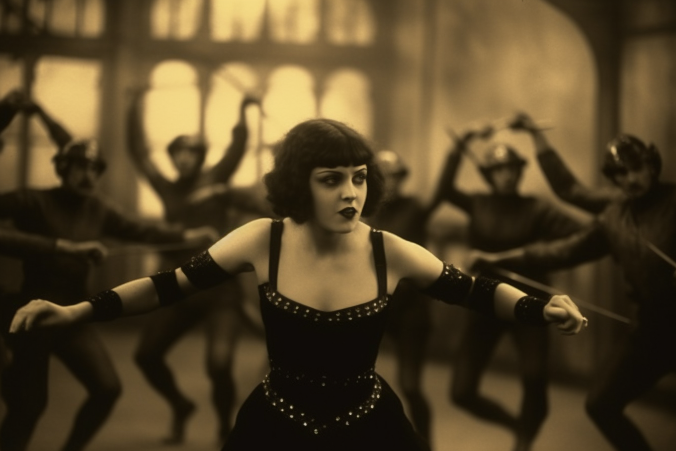 “Musidora in fight scene from the Louis Feuillade-directed film series Les Vampires, 1915” #midjourney #AIArt