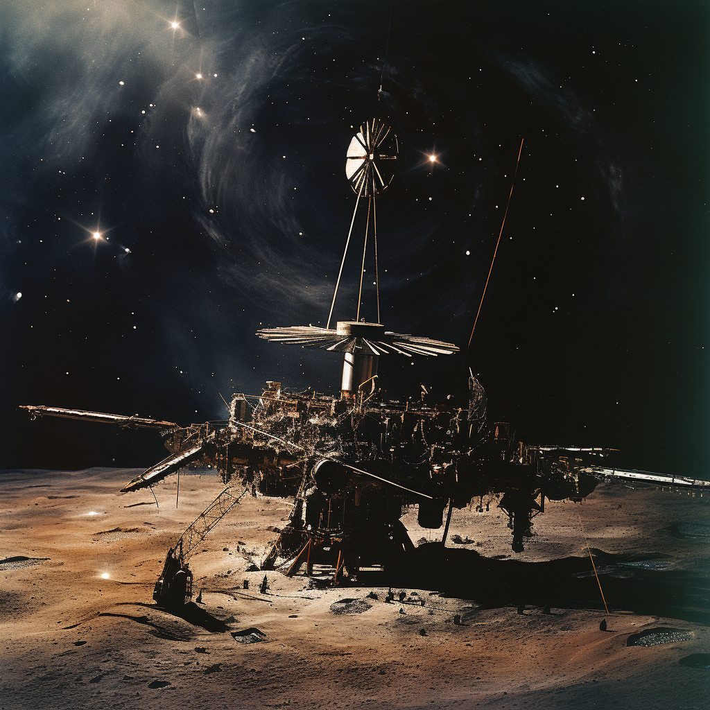 “The spacecraft Hawkwind was found by Captain RN Calvert of the Société Astronomæ (an international guild of creative artists dedicated in eternity to the discovery and demonstration of extra-terrestrial intelligence) on 8 July 1971 in the vicinity of Mare Librium near the South Pole. The discovery of the Hawkwind has led to more wild speculation than any of the mysteries of space that we have so far encountered. The facts surrounding the discovery of this drifting two-dimen…” #midjourney #AIArt