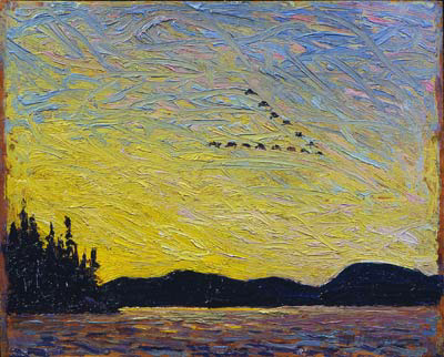 While I am painting trees in Algonquin Arthur Lismer is painting ships in Halifax. S. S. Olympic in Dazzle.