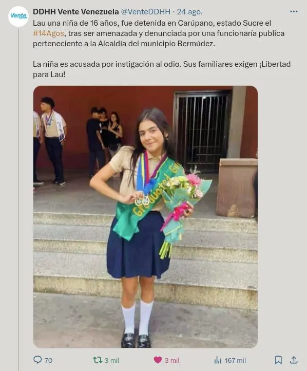 Victoria es acusada por terrorismo, luego de estar manifestando en contra del chavismo