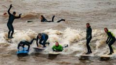 Watch: Surfers ride wave as it sweeps along Severn Estuary