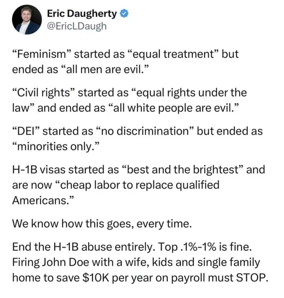 Can’t wait to see how this one plays out… I told myself for months I had nothing to worry about, and AI wouldn’t steal my job. No, it was the silicon valley tech bros guiding the state to push immigrant riding H-1Bs all along, lurking in the shadows of ‘The Great Replacement’.