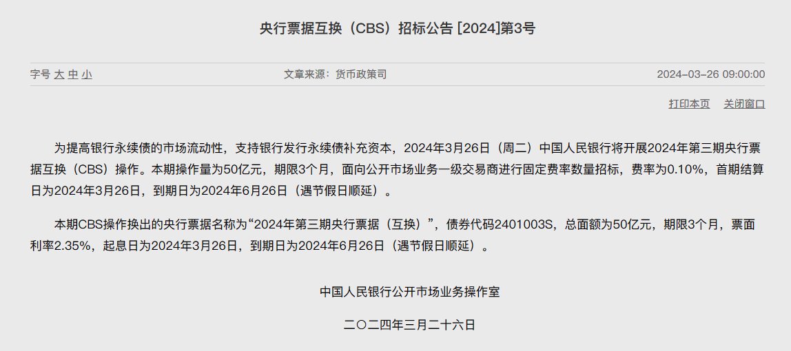 中国央行周二开展50亿元3个月期央行票据互换(CBS)操作。 https://t.co/XRbTuDnHrX