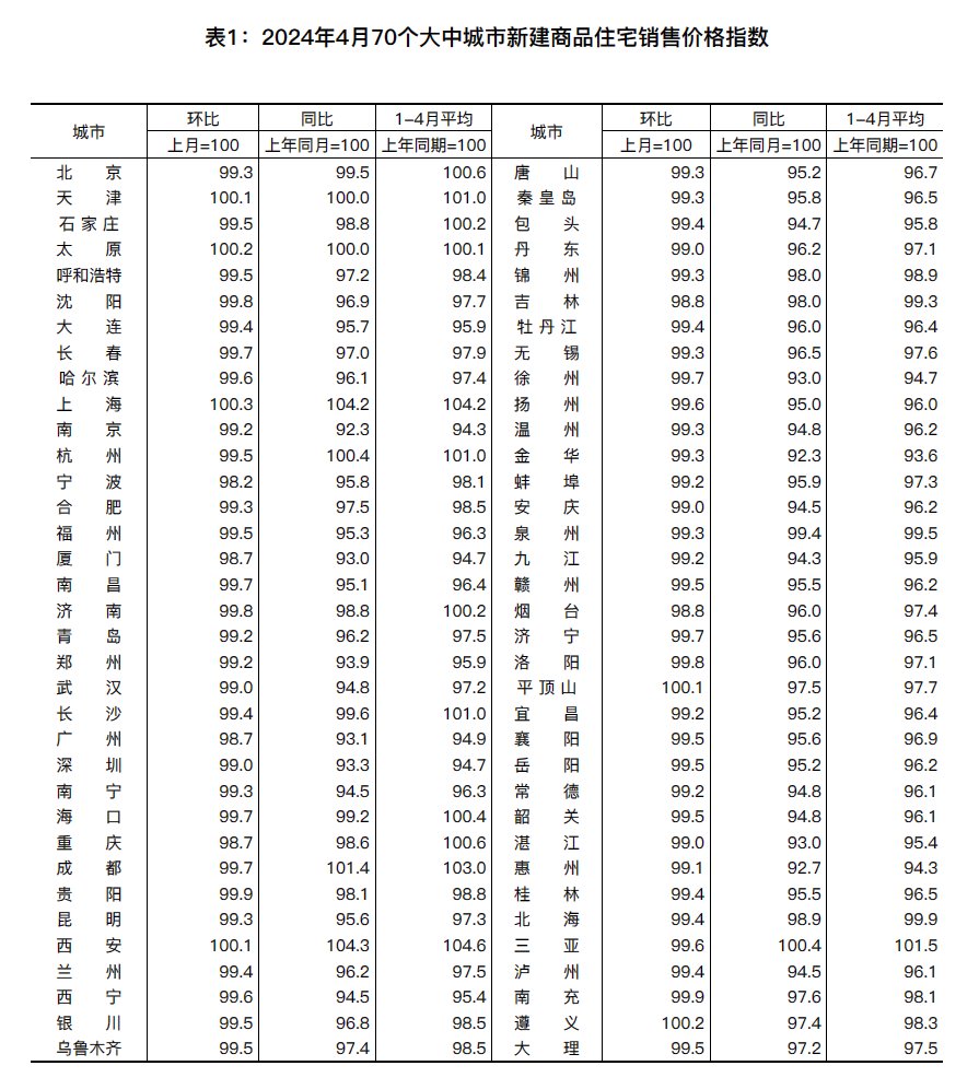 中国4月各线城市一手、二手商品住宅销售价格环比同比跌幅均扩大。