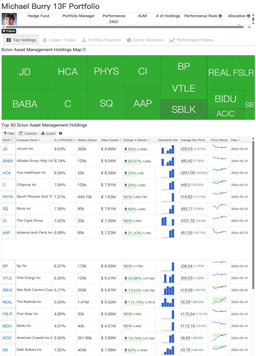 Michael Burry一季度增持京东和阿里,以及新增421万美元的百度ADRs。