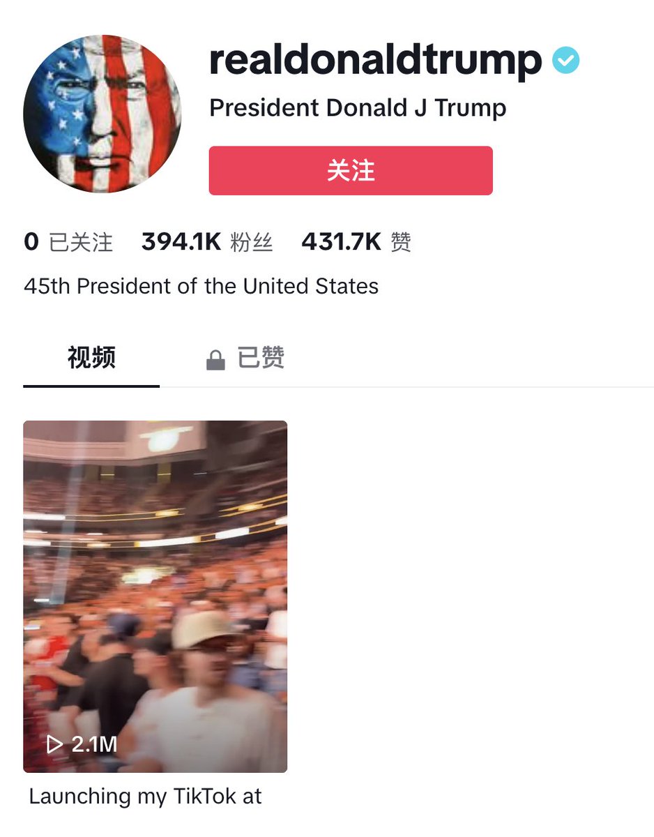 特朗普开设TikTok账号,目前短视频播放量已达210万次。